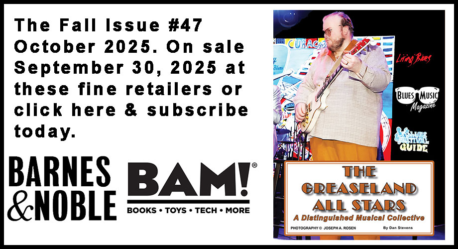 - Blues Music Magazine is published four times per year in print. In January, April, July, and October the print edition is delivered to fans around the globe via USPS. The print edition is also distributed to every cabin aboard both cruises with The Legendary Rhythm & Blues Cruise.- Blues Music Magazine features five contemporary touring blues musicians, three columnists, guest columnists, album reviews of newly released music, and a music catalog of new releases available on our Blues Music Store website in every issue.- Each issue also features a twelve-song sampler CD for download at the Blues Music Store website.- All previous issues of Blues Music Magazine are available digitally three months after their release date online at the Blues Music Store website.- Blues Music Magazine also digitally publishes special editions titled Blues Music Online which are emailed to all print subscribers. |